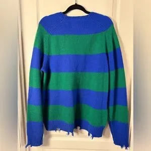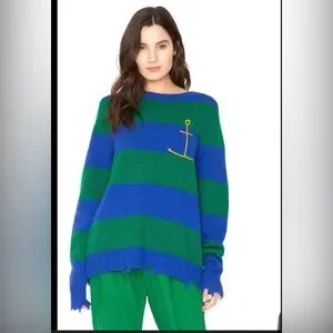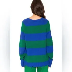 NEW Sandrine Rose Cashmere Sweater - Green and Blue Stripe Sz L