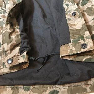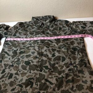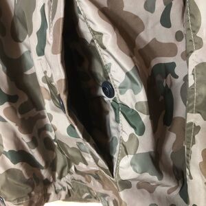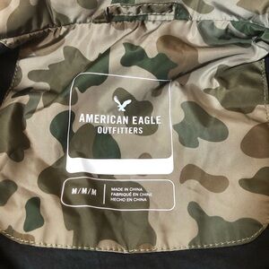 American Eagle Men's Lightweight Camouflage Jacket, Lined Windbreaker, Medium, Olive in color although photos look more brown, NWOT, drawstrings for better fit, pet/smoke free home, Stay stylish and comfortable with this men's camouflage jacket. Perfect for outdoor adventures.
