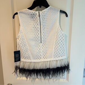 NWT etcetera white sleeveless eyelet top with black & white feather accents | 0