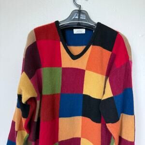 Lord & Taylor CASHMERE RARE vintage 1980s or 1990s checkered sweater Size XL