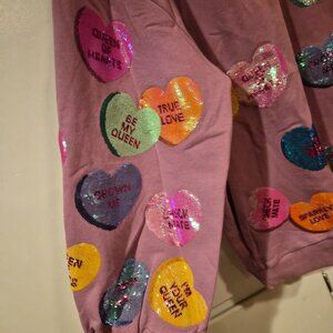 XL Purple sequined sweatshirt; perfect for Valentine's Day! Excellent pre-owned condition.