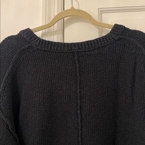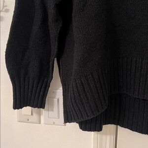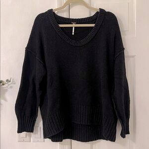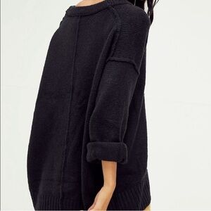 Free People Brookside Tunic Sweater in Black. Size: XS. Cozy sweater in an oversized, slouchy drop-shoulder silhouette. Features: scoop neck, long sleeves, 55% cotton, 32% acrylic, 10% polyester, 2% nylon, 1% elastane. Hand wash, dry flat. Excellent pre-loved condition
