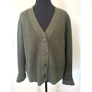 Old Navy Olive Green Ribbed V-Neck Cardigan Sweater Grandpa Style Medium