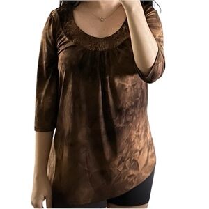Bobbie Brooks Brown Tie Dye Sequin Detail Fall Top Size Medium
