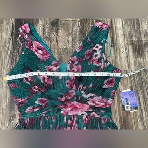 NWT R&M Richards Nightway Lurex Mesh Floral Maxi Dress Teal Color Size 10