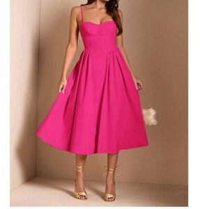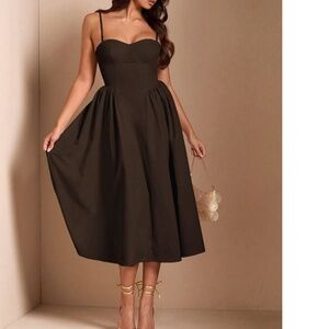Classic Solid High Waist Flared Cami Party Evening Dress