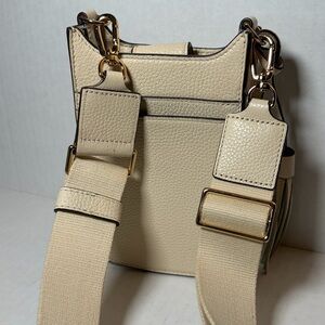 Tory Burch Thea Phone Crossbody Bag Beige Leather Shoulder Purse Tassel Logo