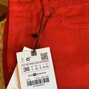 NWT size 4 Mid rise jeans with five pockets. Straight leg and unfinished hem. Front metal button closure.