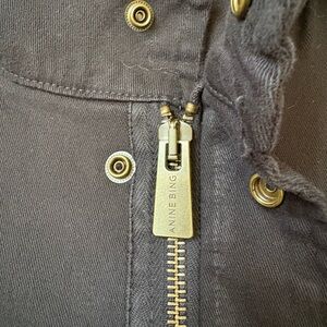 Anine Bing black multi pocket utility military army jacket, sz S. Classic and unassuming, this cotton jacket is perfect for as we transition to fall! Has plenty of pockets for storage. Closure is a zipper with hidden snap buttons. Elevate your wardrobe with this piece! Total grunge look!