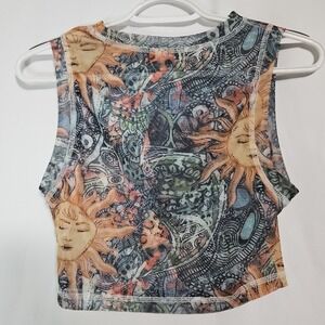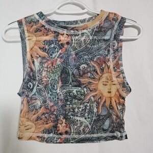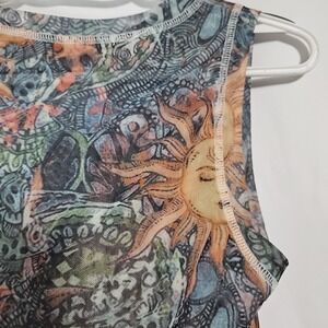 Sheer Celestial Sun Mesh Crop Top Grunge Fairycore Festival Tank Y2K Style