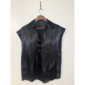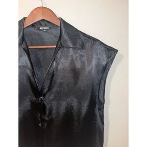 EXPRESS Black Satin Sleeveless Collared Button Up Shirt Top Women's Size Medium