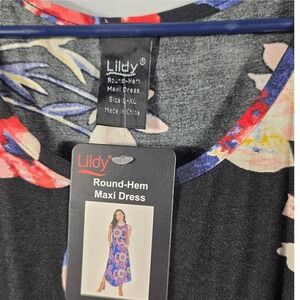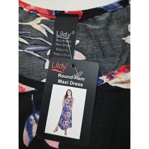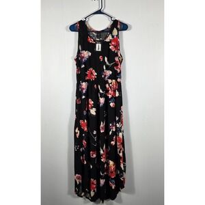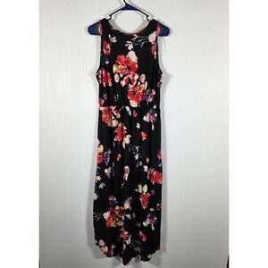 Lildy Black Floral Round Hem Maxi Dress LXL Sleeveless Women's