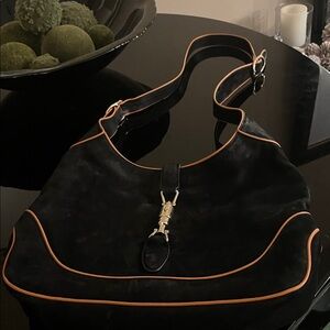 Authentic Gucci Jackie Black and orange suede hobo bag. The bag is in overall good condition. The suede needs some love but even if not conditioned, a beautiful bag. Super clean on the inside. Please look at pictures carefully.