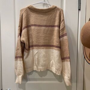 NWOT…Super cute Love Ellie Rose Colored Metallic Stripe Crew Neck Sweater. This sweater has a beautiful color combination that is a perfect addition to any wardrobe. Super soft with a relaxed fit. The shimmer gives it a sophisticated look.