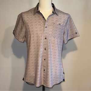 7 Diamonds Red & White Speckled Geo Print Short Sleeve Button-Up Shirt Men’s S