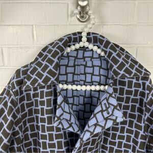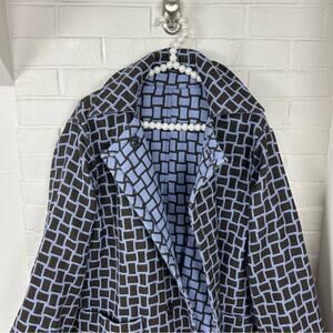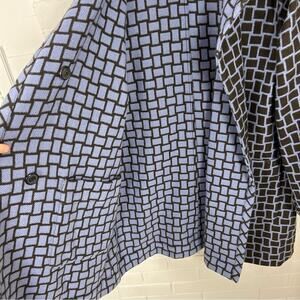 Good pre worn condition. Amazing piece from luxury brand worth. 100% wool. Size small but has an oversized fit. If you need pit to pit please let me know. A purple/blue and brown plaid print. Reversible style. Front pockets. Amazing structure. Perfect for the fall and winter season. Stand out piece no longer sold as the brand is no longer manufactured. One end of the brand tag is not tacked down. All sales final.