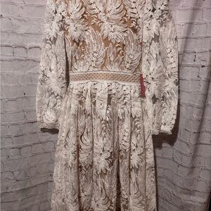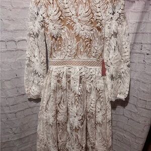 Ivy City Co Cream Floral Lace Dress XS - 0