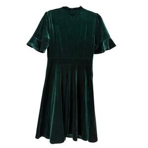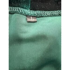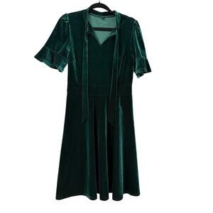 Emerald Green Velvet Tie Neck V-Neck Fit Flare Dress Bell Sleeve L Goth