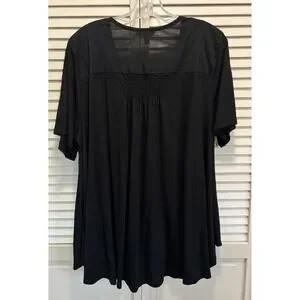 Terra & Sky Black Blouse Size 3XL Button Up Front Short Flutter Sleeve Smocked