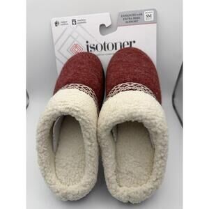 Isotoner Women’s Memory Foam Slippers Size 6.5–7 Red NWT Indoor Outdoor