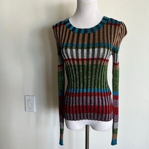 So gorgeous and colourful knit top by Missoni with bold stripes making it perfect to pair with jeans or black or white or gold or silver pants! Get it. This sweater goes with everything. Evening elegance