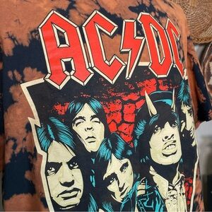 AC/DC Highway to Hell Rock Band Men Shirt Short Sleeve Bleached Tie Dye Size XXL