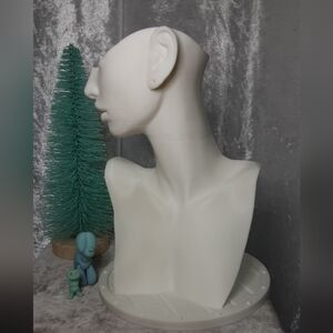 This jewelry stand holds an earring and a necklace.She add such a nice touch to your jewelry photos.She is available in white or black. She measures aprox 8" tall. Comes from a smoke free pet friendly home.