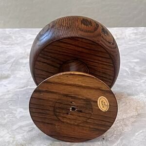 Vintage Rustic Oak Wood Pedestal Bowl 6" Tall Display Decor