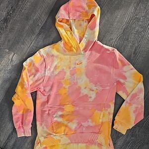 Bright tie-dye hoodie and shorts with a bold Nike logo. Perfect for casual wear. Shorts were worn once and the hoodie twice. No stains. Like New condition.