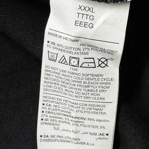 Country of origin: Made in Vietnam; RN 54023; CA 17897.