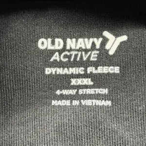 Branding: Printed Old Navy Active neck logo with Dynamic Fleece and 4-Way Stretch graphics inside collar.