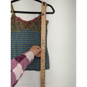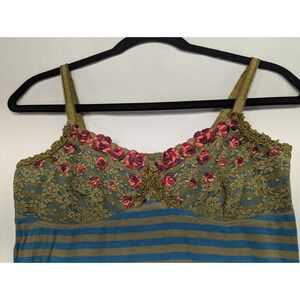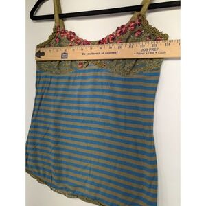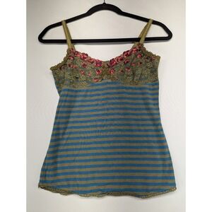 Free People Blue Brown Stripe Lace Floral Trim Cami Tank Top Size M