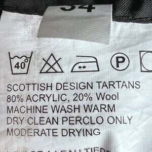 This Scottish kilt features a classic Black Watch plaid pattern in a durable 80% acrylic, 20% wool blend. It is lightweight yet structured, with adjustable leather straps for a secure fit. Detailed pleating adds traditional appeal, while its lightweight fabric ensures comfort and durability.