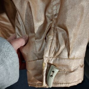 Elevate your style with the Bernardo women's bronze Winter jacket. This versatile piece offers a sleek look, perfect for any occasion. Has plastic saber tooth looking buttons & a zipper. Non-smoking home. Please check out the pics. Thanks for looking at my closet!