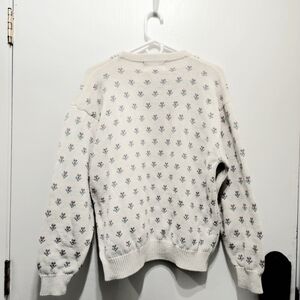 Eddie Bauer Cream Sweater with Pink and Purple Floral Design