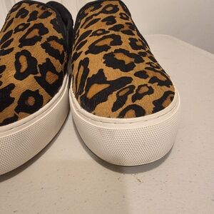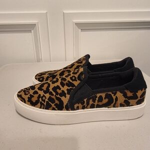 UGG women's Cahlvan Leopard print sneakers in excellent condition. These Sneakers were only worn 1x indoors and they still have the bottom sticker attached. The fur is real calf as noted on the bottom sticker. women's size 11. Please view all photos carefully as no returns.