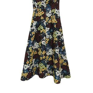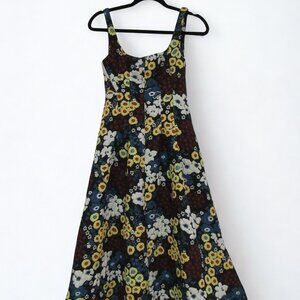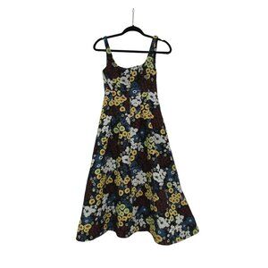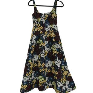 This dress major cottagecore elegance while still feeling modern and polished. This midi dress features wide straps, a fitted bodice, two functional side pockets, black interior lining and a gracefully flowing skirt. Its classic Anthropologie design ensures it stands out in any wardrobe.