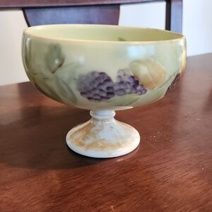 Beautiful vintage Imperial PSL porcelain compote pedestal bowl with delicate hand-painted floral design. Perfect for cottagecore, grandmillennial, shabby chic, or Victorian-inspired décor. Lovely as a dessert bowl, fruit centerpiece, or vanity display.