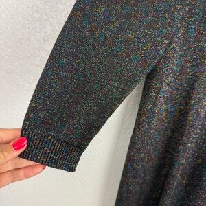 Tags: 1130876, A83784, stretch, stretchy, Lane Bryant dress, metallic dress, NYE, New Years Eve, holiday dress, sparkle, sparkly, multicolor, fun, dopamine, mock neck, black, yellow, blue, pink, magenta, Lane Bryant dress, sweater dress, shimmer dress, sparkly dress, rainbow sparkle, black glitter dress, plus size dress, knit dress, 14/16 dress, midi dress, party dress, holiday dress, festive wear, NYE dress, Christmas dress, birthday outfit, evening wear, ribbed neck, 3/4 sleeve, crew neck, modest party dress, glam, glittery, multicolor shimmer, comfy, cozy, stretchy, pullover dress, knitwear, winter outfit, fall fashion, curvy fashion, curve-friendly, celebratory, bold sparkle, statement dress, flattering fit, flare shape, rainbow flecked, knit glam, celebration