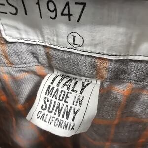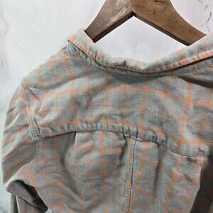 Frank & Eileen Shirt Womens Large Gray Orange Plaid Flannel Windowpane Barry