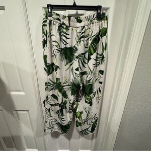 Eliane Rose Tropical Leaf Print Wide-Leg Pants - Size L