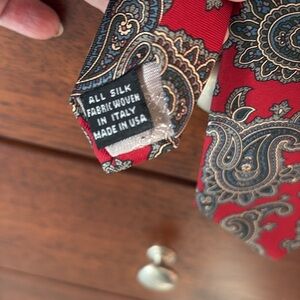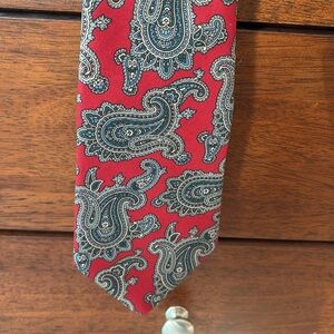 Christian Dior men’s tie 100% silk Paisley red/blue fabric Italy made in USA