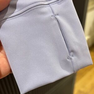 Light purple sports bra with matching long-sleeve top. Ideal for workouts.