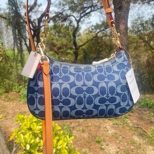 Elevate your style with the Coach Blue Signature Shoulder Bag. This elegant accessory features the iconic Coach design, perfect for any occasion.