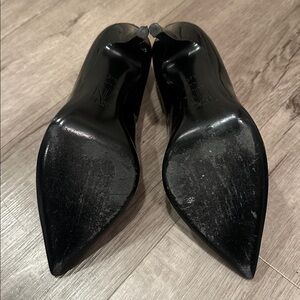 Step out in style with these elegant black stiletto heels. Perfect for any occasion, they offer a sleek and sophisticated look. Lightly worn