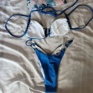 New Shein 2 Piece Halter tie Bikini Swimsuit, Blue, Size Small, never worn, protective seal still on it, original packing.