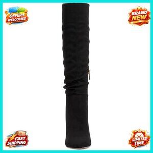 Style: Slouchy knee-high boot with almond toe and block heel