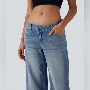 Halara Flex™ Asymmetric Low Rise Zipper Baggy Wide Leg Jeans small Petite NWOT**