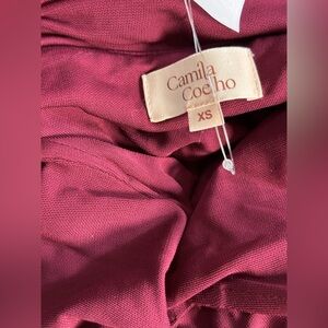 Camila Coelho Minji Maxi Dress in Maroon red strapless sheer ball gown flowy