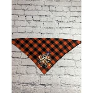 NWOT I PUT A SPELL ON YOU orange and black flannel buffalo plaid print pet bandanna. 26“ x 17“